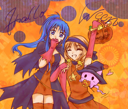 オン友シホちゃんのオリキャラ、レイちゃん(左)とシーちゃん(右)を描かせて頂きました、よv